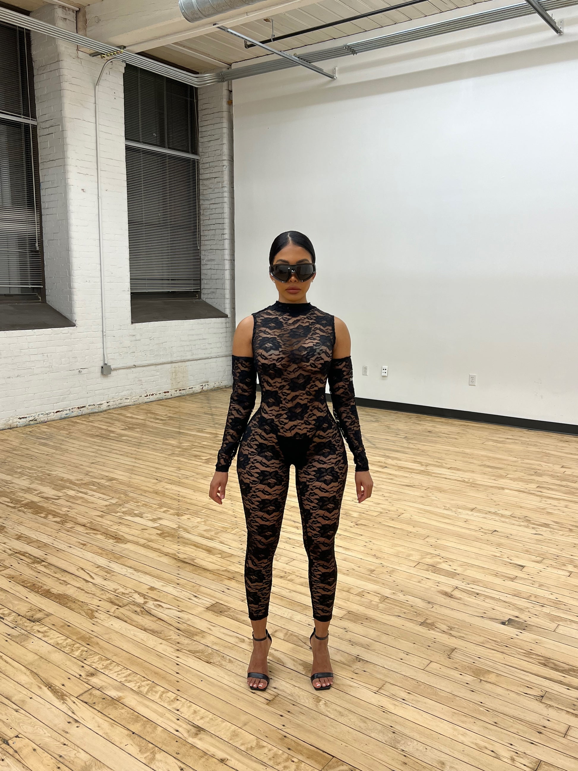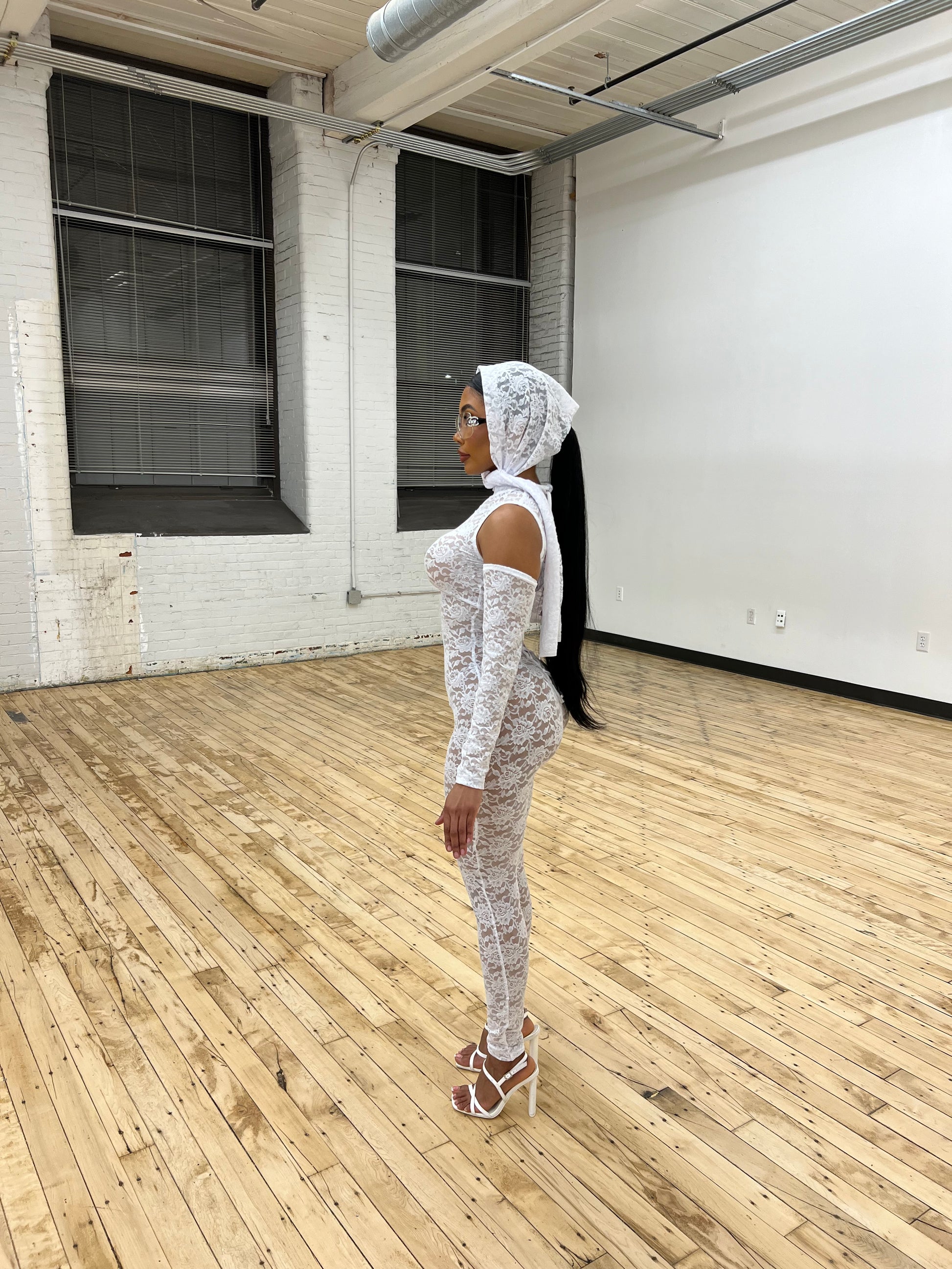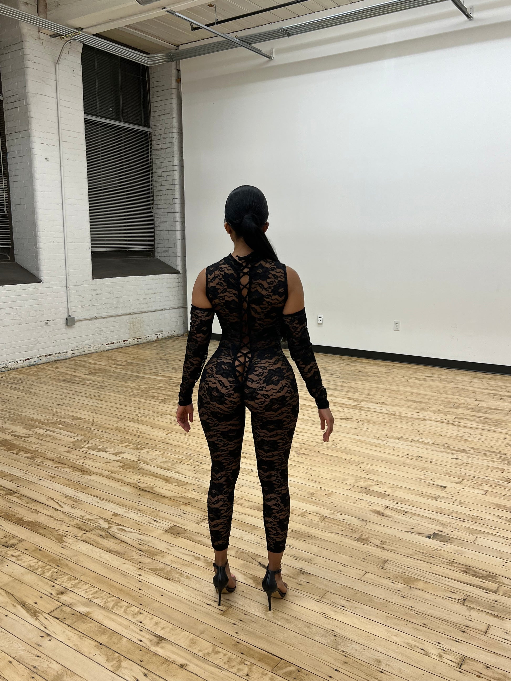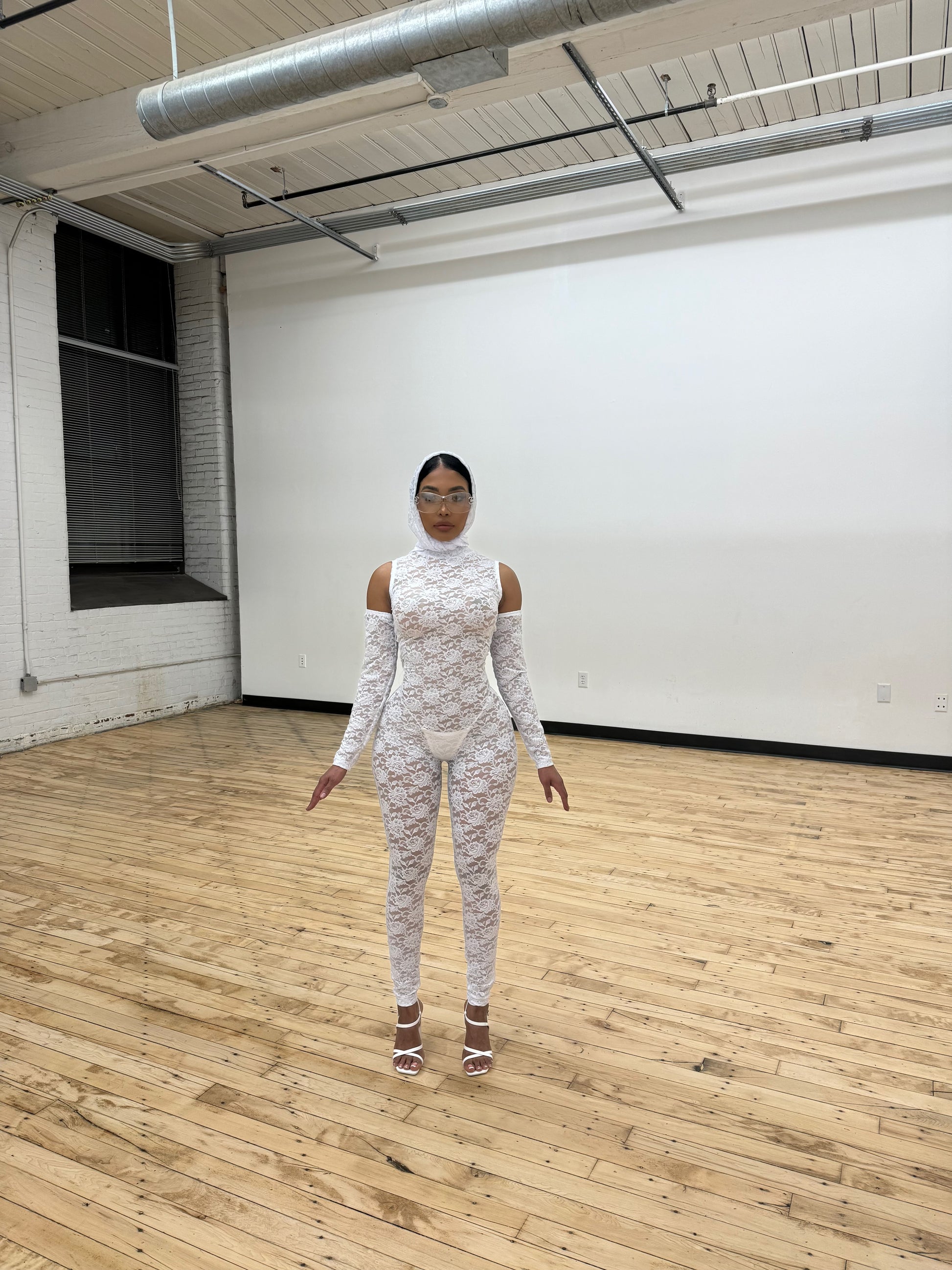 LACED JUMPSUIT | HEAD PIECE & GLOVES